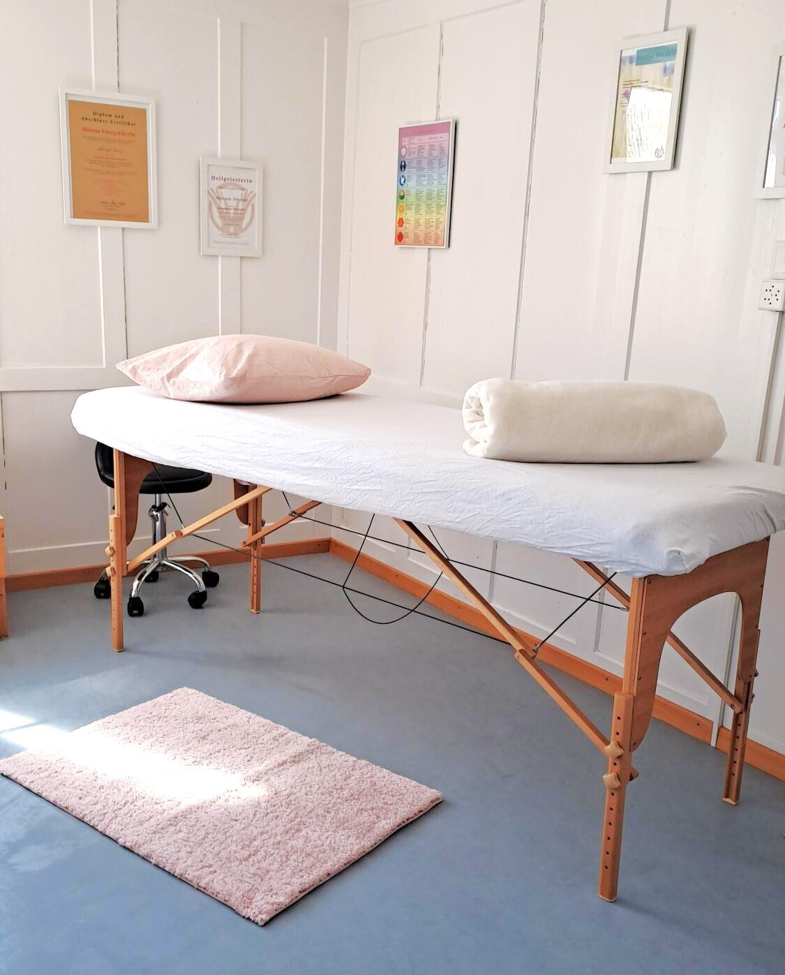 Reiki wird am bekleideten Körper, auf der Liege liegend durchgeführt.